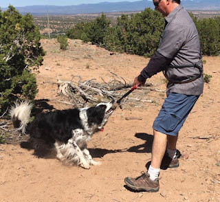 This morning I asked John, who walks the dogs many times without me, to play tug with Deuce at a particular spot. The reasoning behind this is twofold.  Unfortunately for me, I cannot play as much tug as I want with my dogs due to an injury to my right hand.  In addition, John plays regularly with him on walks, but kind of on the same part of the hike.  Today, I am asking him to induce Deuce to play in a spot that he normally does not.